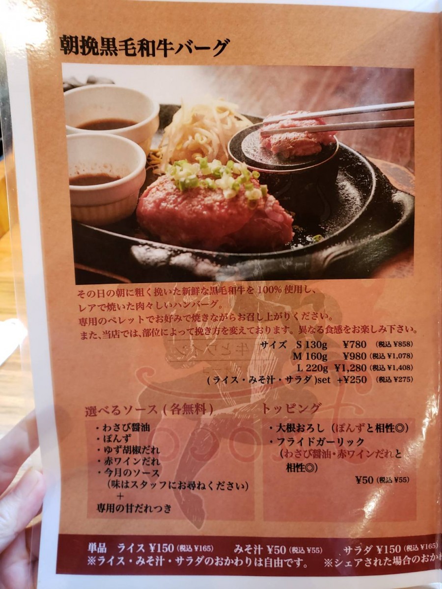 ハンバーグもサイズが選べるのが嬉しい