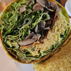 ズッキーニのラップにコーンとカシューのスクランブルエッグ